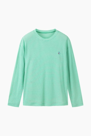 넥 라인과 소매단, 밑단에 립 조직을 적용하여 핏을 잡아줌.