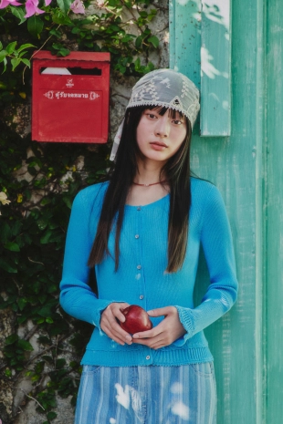 넥 라인과 소매단, 밑단에 립 조직으로 핏을 잡아줌.