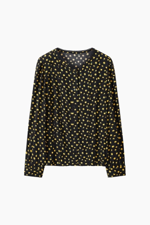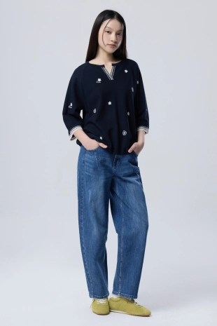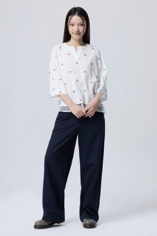 전판 자수 패턴으로 경쾌한 포인트를 더한 블라우스.